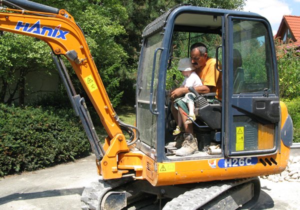 dann waren wir in bad vilbel in der fertighaussiedlung (mehr dazu hier). er hat ganz lange einem baggerfahrer zugeschaut, der ihn dann irgendwann gefragt hat, ob er mit fahren will. er hat gleich mit großen augen „ja“ gesagt (staun!) und durfte sogar die hebel bedienen. sehr netter baggerfahrer!!! das war richtig toll für filip!