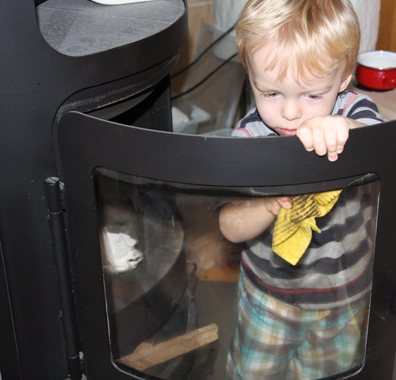 nach einem ziemlichen sturm am freitag, der unser dachfenster mitgenommen hat, und ohne den versprochenen schnee haben wir jetzt den ofen an. filip hat natürlich geholfen ;-)
